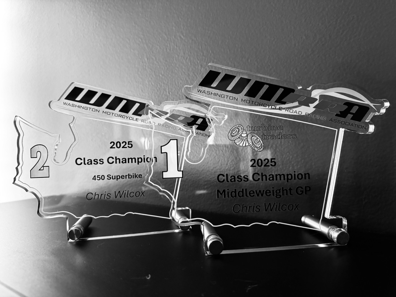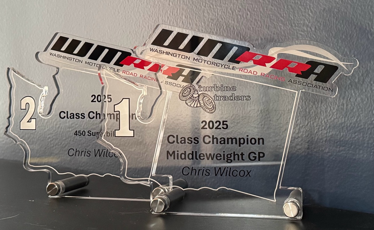 I attended the WMRRA 2025 Banquet last night and received trophies for taking 1st in Middleweight GP and 2nd in 450 SBK this season. I am grateful for having this club to race with in Washington and the grid of competitors that shows up. All season long I had to battle with a number of very talented riders, which makes it mean that much more.